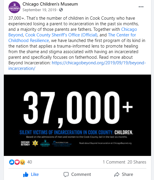 I generated social media content around a new pilot program while liaising with partners at Chicago Beyond, Cook County Sheriff’s Office, and The Center for Childhood Resilience.